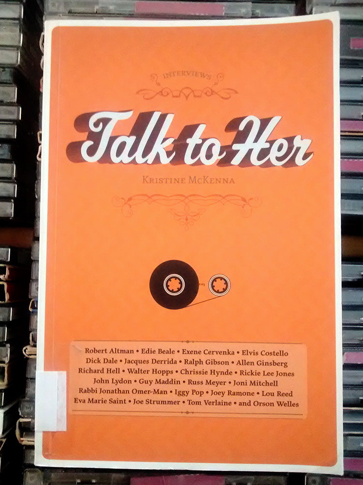 Talk to Her es su segunda recopilación de entrevistas. En este libro puedes encontrar a Robert Alman, Elvis Costello, Joey Ramone, Lour Reed, Allen Ginsberg o Lou Reed. Un elenco impresionante. Además incluye retratos de los entrevistados a cargo de algunos de los mejores ilustradores que puedas imaginar como Daniel Clowes, Charles Burns, Phoebe Glockner…